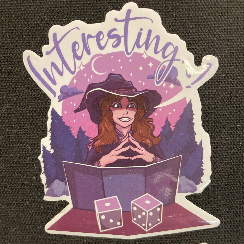 Natalie in her Witch Keeper persona smiles with ominous joy as she observes a player’s failed roll result and gleefully says a common catchphrase of hers - “Interesting~!”