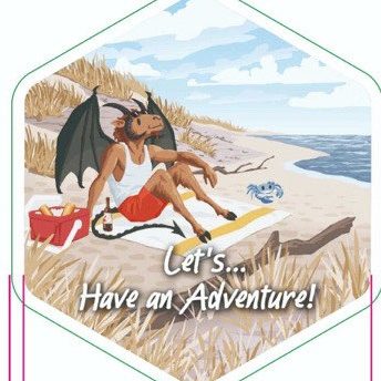 Our Adventure Stickers are a series of hexagon shaped vinyl stickers drawing inspiration from the simplified style utilized in many National Park stickers of similar size and subject matter. Our twist adds a notable cryptid amidst the parks landscapes and the signature phrase from our show - “Let’s… Have an Adventure~!”
