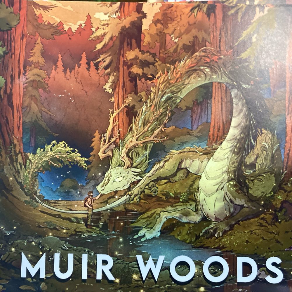 Jarendrakir Nuatharis, the foreboding forest dragon takes a moment of respite with his boyfriend, Lark, a park ranger, while exploring the Muir Woods together at golden hour.
