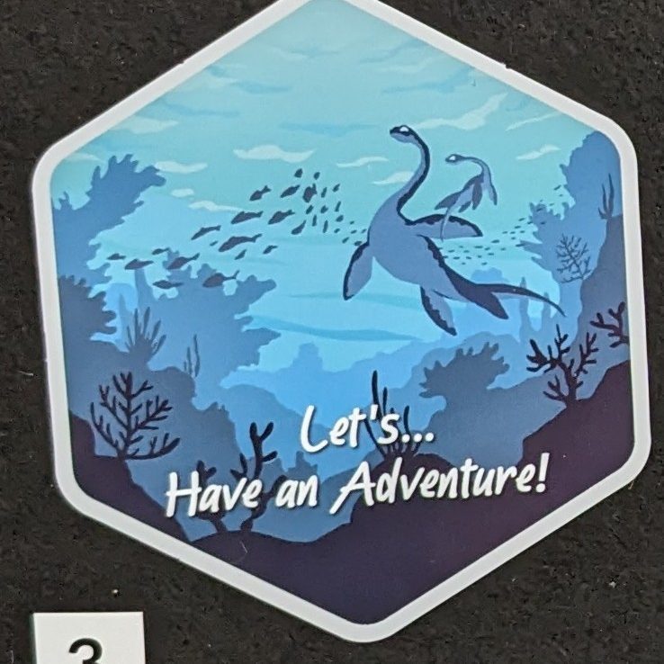 Our Adventure Stickers are a series of hexagon shaped vinyl stickers drawing inspiration from the simplified style utilized in many National Park stickers of similar size and subject matter. Our twist adds a notable cryptid amidst the parks landscapes and the signature phrase from our show - “Let’s… Have an Adventure~!”