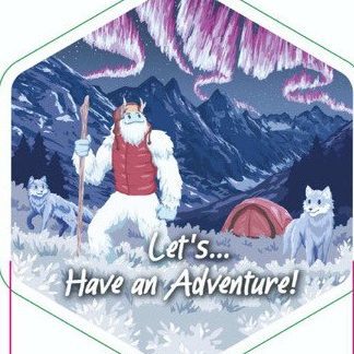 Our Adventure Stickers are a series of hexagon shaped vinyl stickers drawing inspiration from the simplified style utilized in many National Park stickers of similar size and subject matter. Our twist adds a notable cryptid amidst the parks landscapes and the signature phrase from our show - “Let’s… Have an Adventure~!”